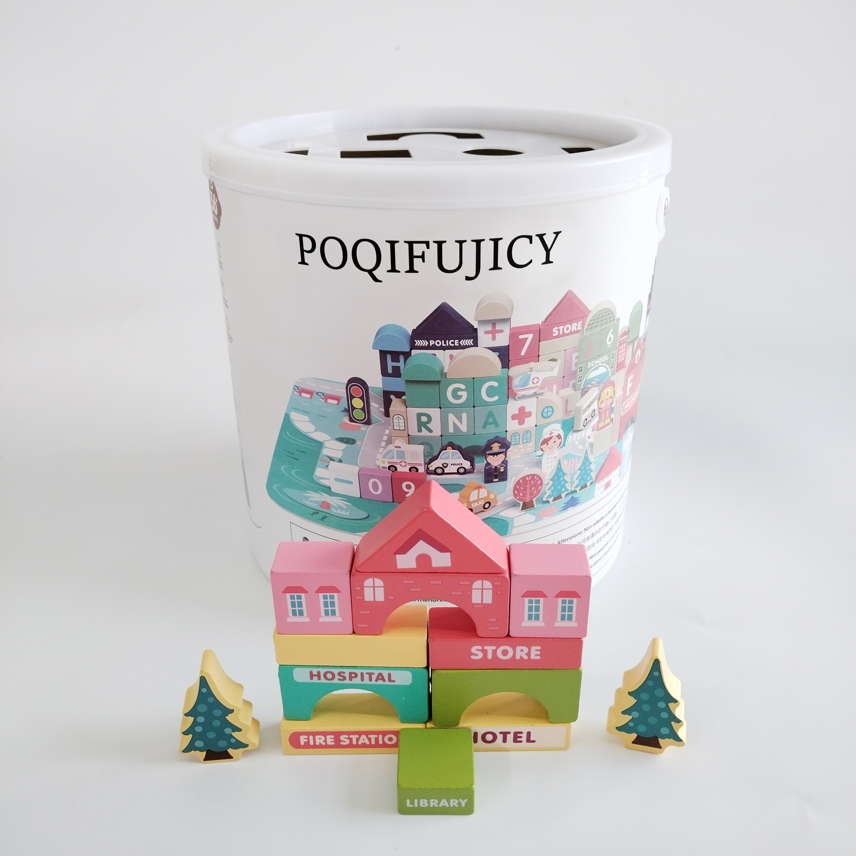 【NATURAL WOODEN TOY BUILDING BLOCKS】This toy building blocks is made of high-quality wood, BPA-free, and painted with bright non-toxic water-based paint, polished smooth, safe and durable surface, manufactured to the highest grade, will not hurt children's little hands. Toy building blocks are easy to grasp, perfect for your children to stack various buildings, such as hospitals, hotels, police stations, schools, shops, etc.